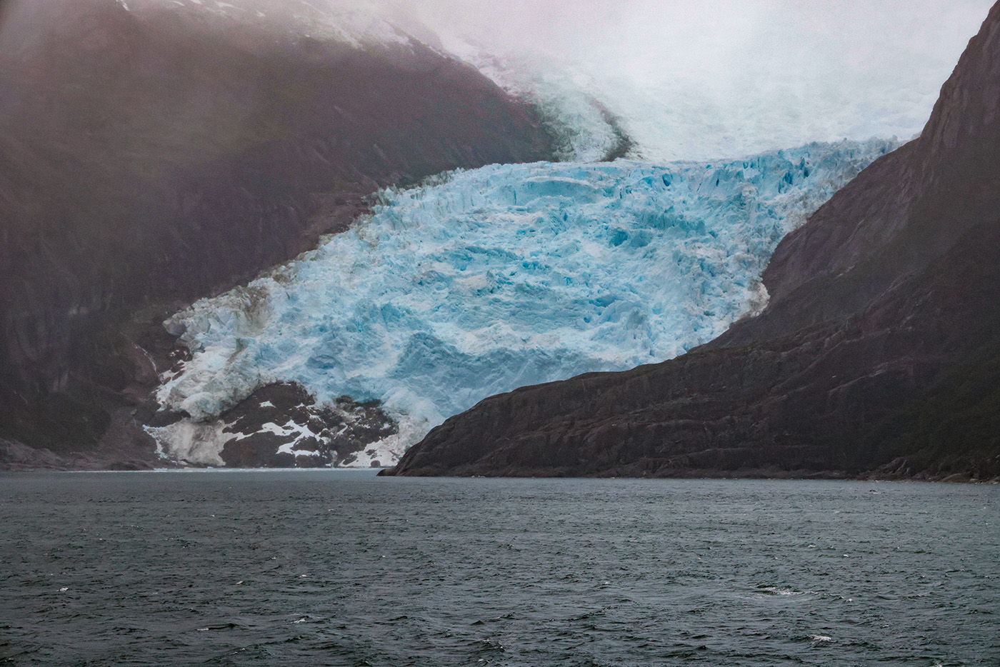 Dieser Teil ist auch als „Glacier Alley“ bekannt, da hier auf der Nordseite eine Reihe von Gletschern in den Kanal münden. Leider war das Wetter etwas diesig.