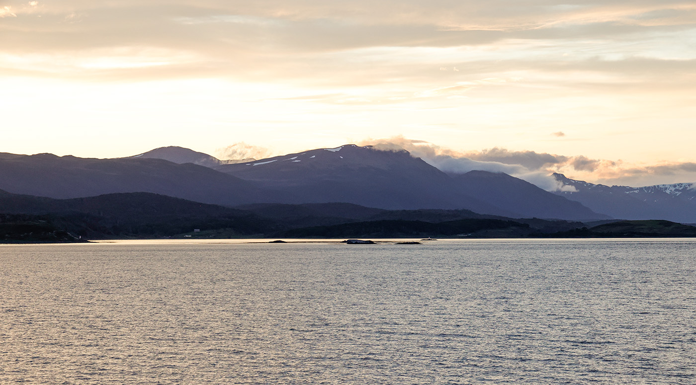 Zum Abschluss des heutigen Tages ging es noch in den Hafen von Husvik. Wir wurden mit einer wundervollen Aussicht auf die umgebenden Berge in der Abendsonne belohnt.