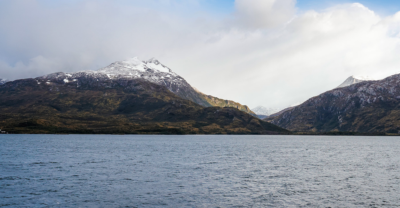 Im Beagle Kanal ging es dann langsamer voran. Der ist hier nicht breit und es gibt viele kleine Inseln. Daher kam zuvor auch ein Lotse an Bord. Das ist für diesen Wasserweg obligatorisch.