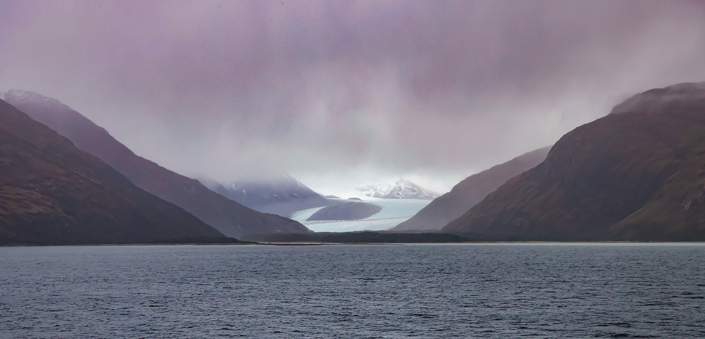 Dieser Teil ist auch als „Glacier Alley“ bekannt, da hier auf der Nordseite eine Reihe von Gletschern in den Kanal münden. Leider war das Wetter etwas diesig.