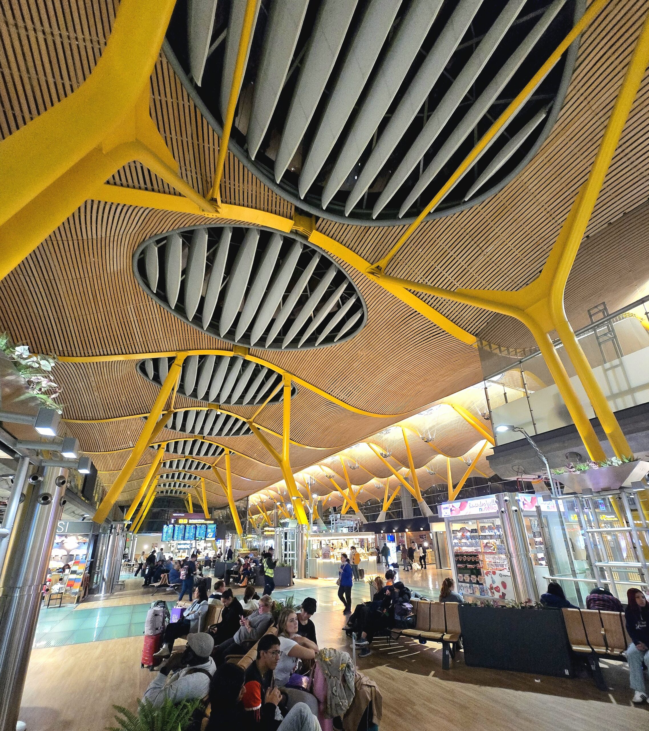 Nach einer gut durchschlafenen Nacht – für ein Airport-Hotel wohl eher ungewöhnlich – brachte uns der nächste freundliche Uber-Fahrer um 7.30 Uhr zum Terminal 2. Am Flughafen hatten wir ein kurzes Frühstück und etwas Aufenthalt. Der Flieger ging mit 30 Min. Verspätung nach Madrid, wo wir aber dank Rückenwind pünktlich ankamen. Der Flug war ruhig aber in Madrid regnete es in Strömen. Das ist schade, da wir hier acht Stunden Aufenthalt haben. Erst um Mitternacht flogen wir nach Santiago de Chile. Also haben wir hier die Baguettes mit Iberico-Schinken und Chorizo probiert und dazu Bier aus oktoberfesttauglichen Gläsern …