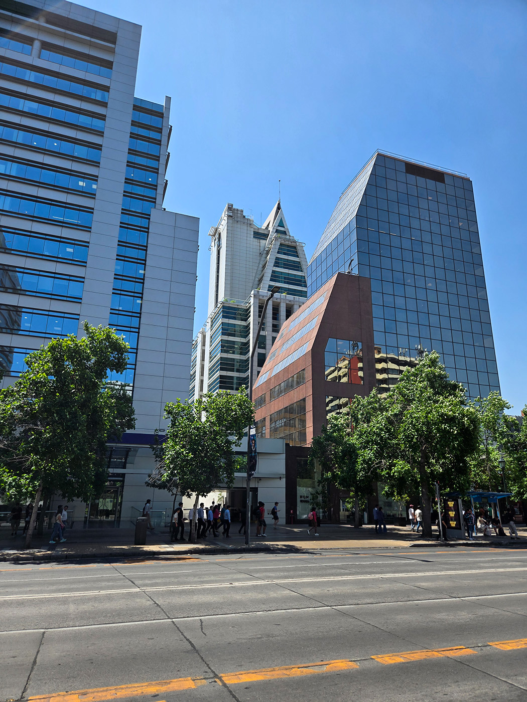 Weiter ging es kurz vor Mitternacht. Auch dieser Flug war ruhig aber 13 Stunden in Zwangshaltung sind nie ein Vergnügen. Aber wir wollten das ja so … Das Essen bei Iberia kann man leider nur als unterirdisch bezeichnen. Zum „Abendessen“ gab es eine lauwarme Frikadelle von ca. 5 cm Durchmesser und eine undefinierbare Melasse an Gemüse. Das Frühstück bestand aus irgendetwas mit Ei (sollte wohl ein Omelett sein) und Hartkeksen – bei der Bundeswehr haben diese drögen Dinger die wenig schmeichelhafte Bezeichnung „Panzerplatten“. Genug gejammert – immerhin kamen wir heile in Santiago de Chile an und das auch noch fast pünktlich.