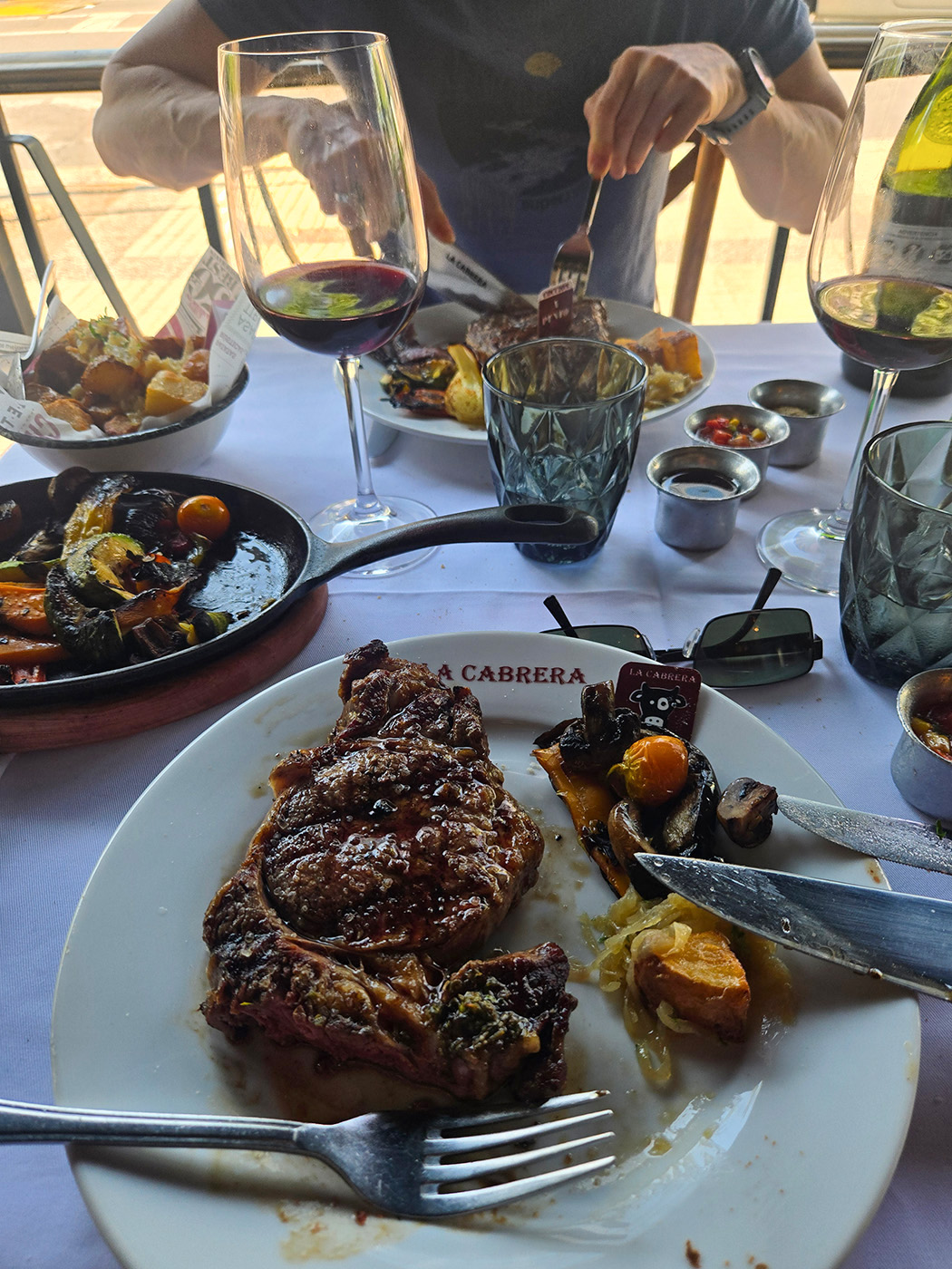 Aufgrund der Zeitverschiebung hatten wir früh Hunger und landeten, einer Empfehlung folgend im La Cabrera, einem Steakhaus, quasi um die Ecke. Wir hatten je 400 g Rib Eye – das gilt hier eher als Kinderteller. Die Steak-Größen reichen weit über die 600 g hinaus.