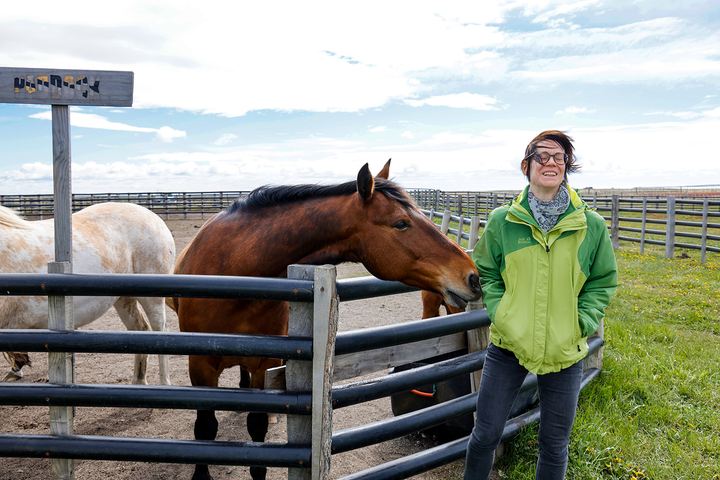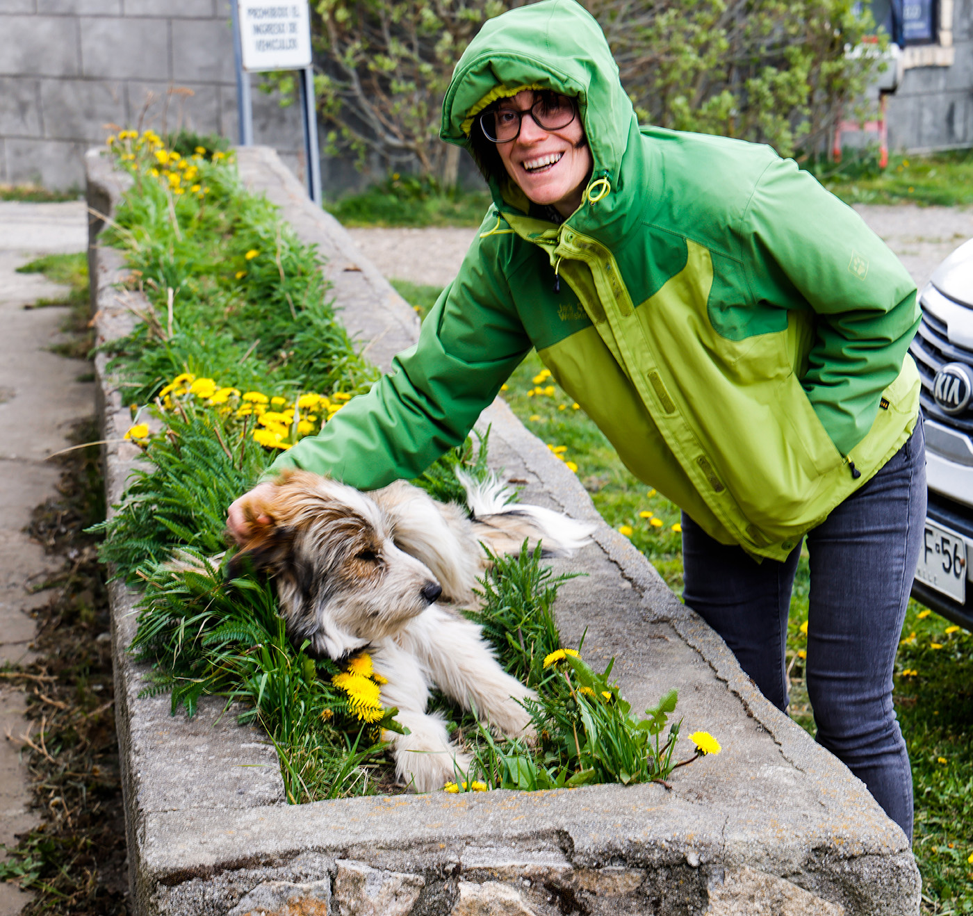 Drei Stunden lang flogen wir innerhalb Chiles in Richtung Süden. Mit dem Bus ging es dann zuerst zu einer Estancia in der näheren Umgebung zum Lunch. Hier gab es auch eine Pfedershow und eine Vorführung traditioneller chilenischer Tänze. Steffie freundete sich direkt mit den hiesigen Vierbeinern an.