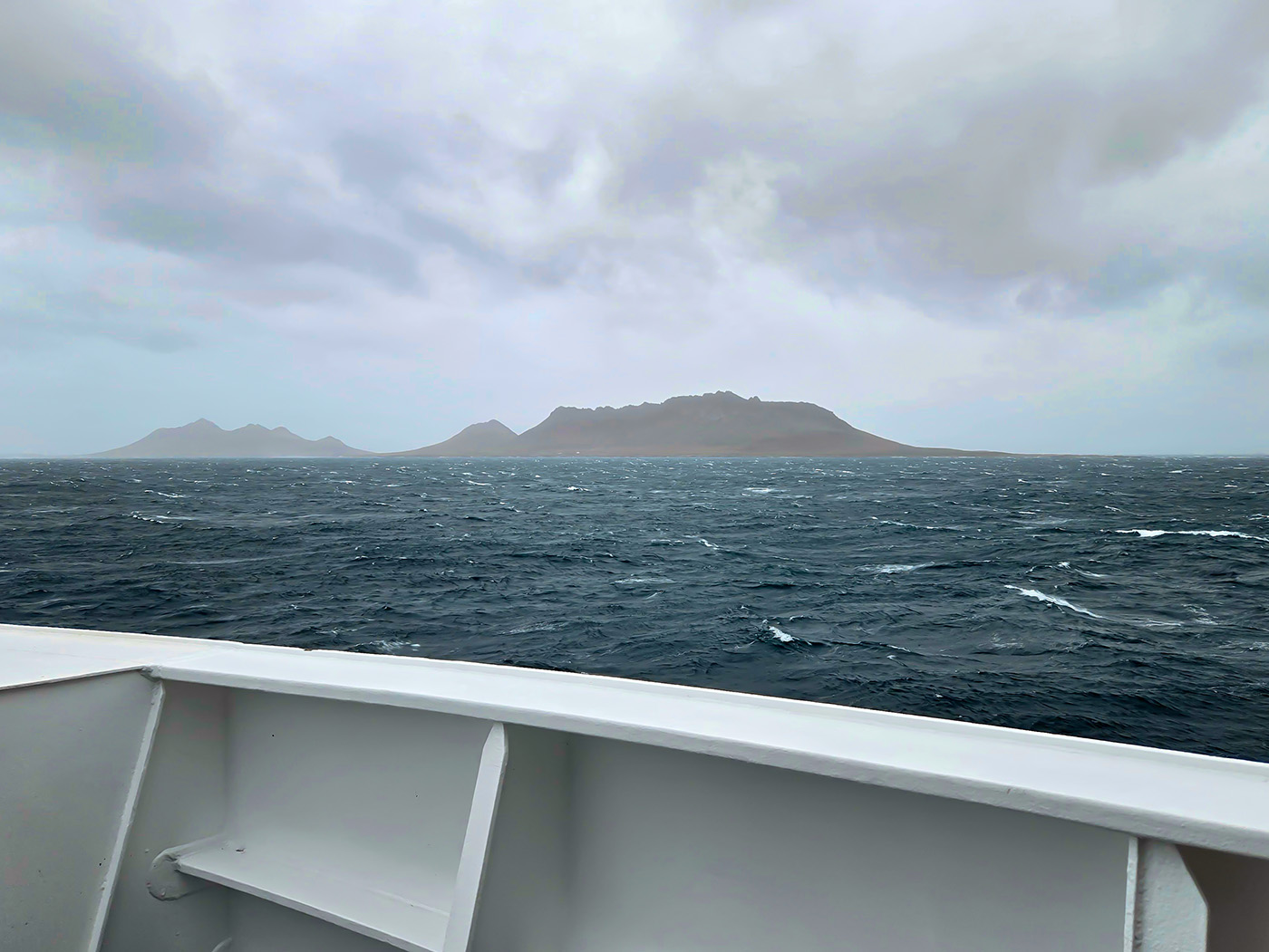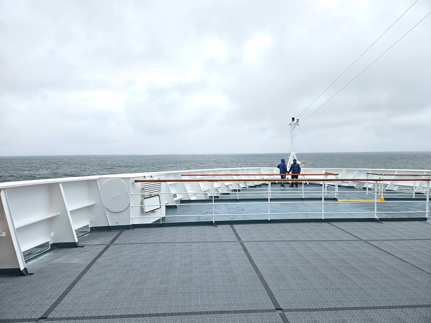 Die Nacht war, wie schon die letzte außerordentlich unruhig. Die Wellen kamen hier von allen Seiten – zum NIcken und Rollen kam noch das Gieren des Schiffes. Das fühlte sich an wie Achterbahnfahren. Nur macht das nach ein paar Stunden keinen Spaß mehr.