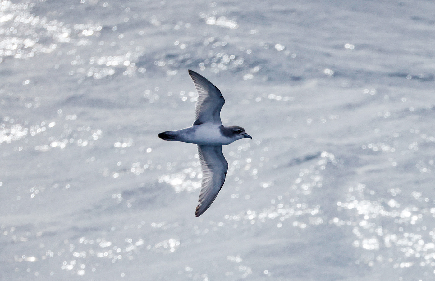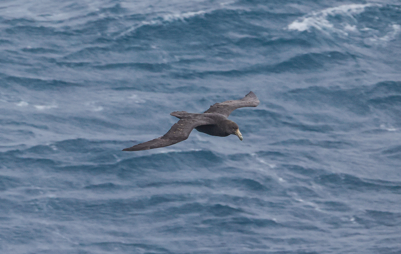 Heute hatten wir einen Seetag. Leider war das Wetter diesig und es gab nicht viel zu sehen. Aber die Wellen waren nur noch zwei Meter hoch. Albatrosse, Sturmvögel und andere Arten von Seevögeln begleiten die Fram auf dem Weg nach Southgeorgia. Hier ein Taubensturmvogel.