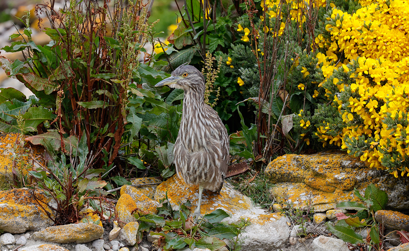 Am Landungssteg trafen wir auf ein paar Magellanausternfischer, die durch lautes Gekreisch auf sich aufmerksam machten und einen Nachtreiher im Tarnkleid.