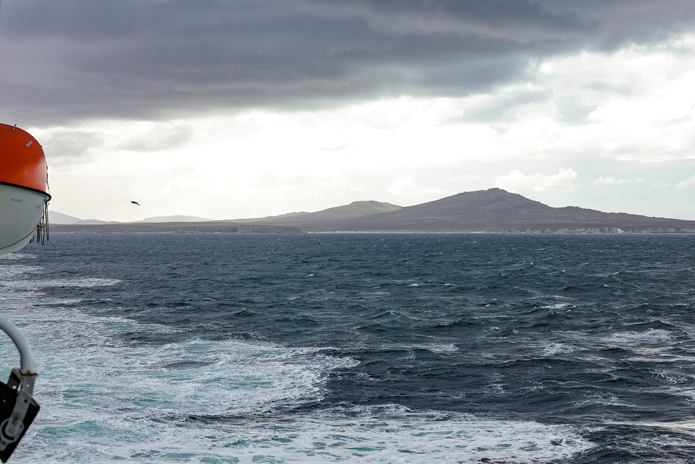 Von hier aus ist es noch eine Tagesreise bis Stanley aber auch in dieser Region nordwestlich der Hauptinseln gibt es mehrere interessante Punkte, die eine Anlandung lohnen. Das sollte dann für den kommenden Tag auf dem Programm stehen, denn an diesem Nachmittag nahm der Wind stetig zu. Die Wellenhöhe lag teilweise bei 8 m und die Windgeschwindigkeit bei weit über 100 km/h.