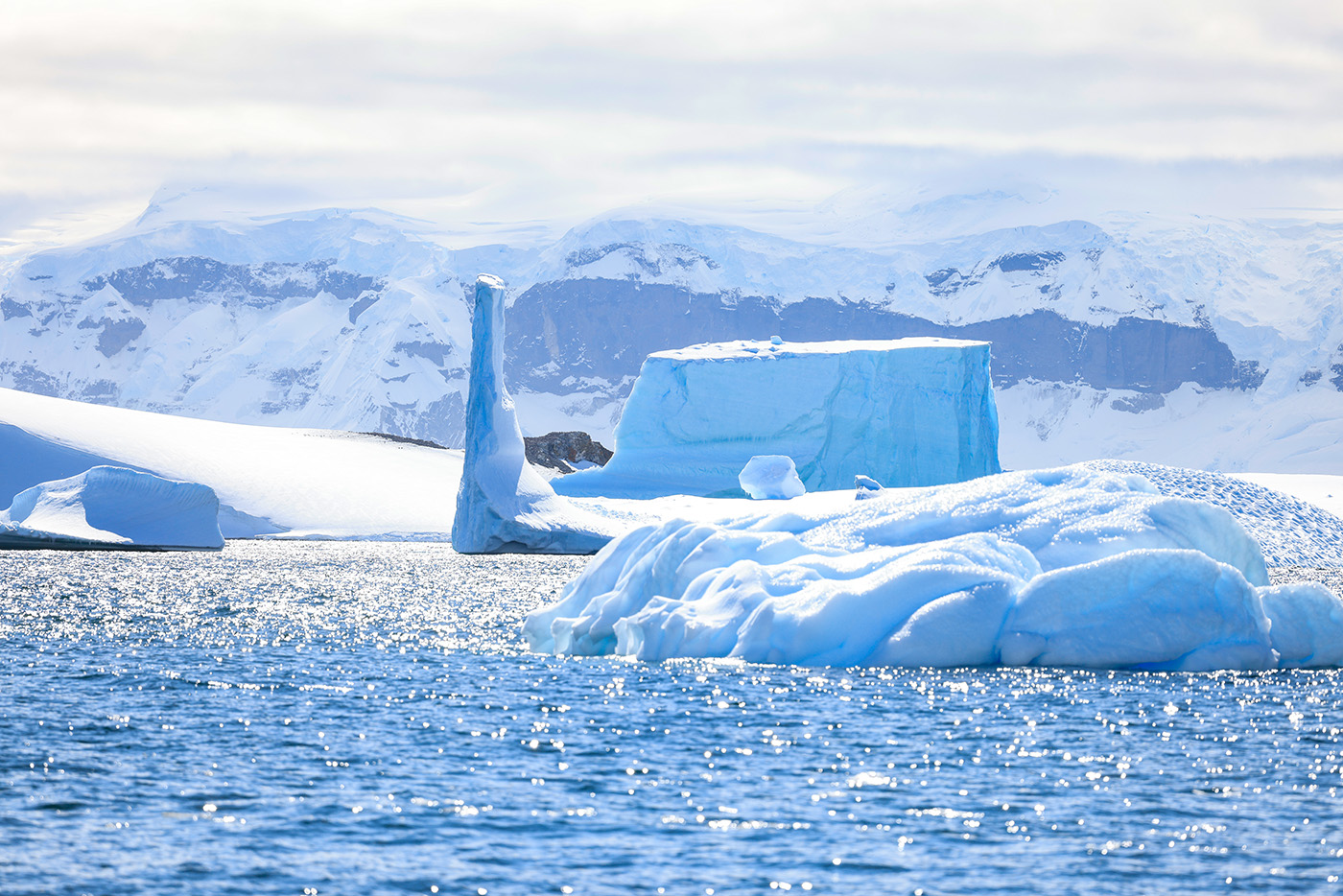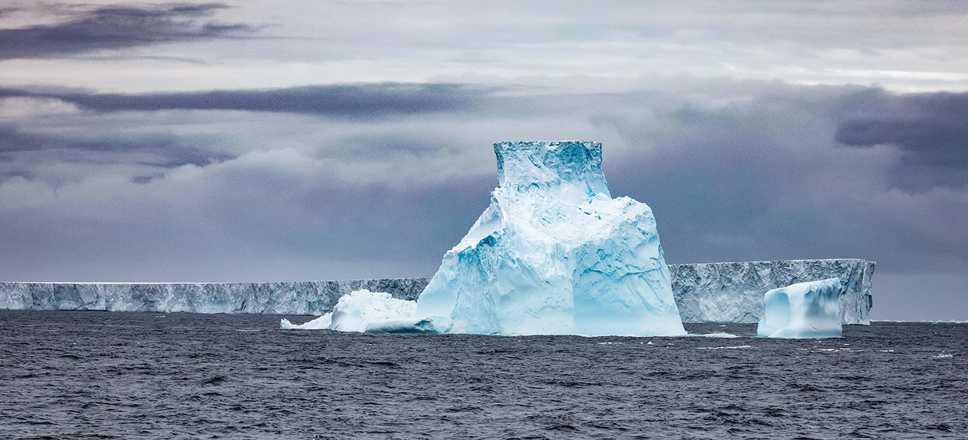 Eisvolumen: Etwa 70 % des gesamten Süßwassers der Erde sind in den Eismassen der Antarktis gespeichert. Würde das komplett abschmelzen, stiege der Meeresspiegel um etwa 66 m.