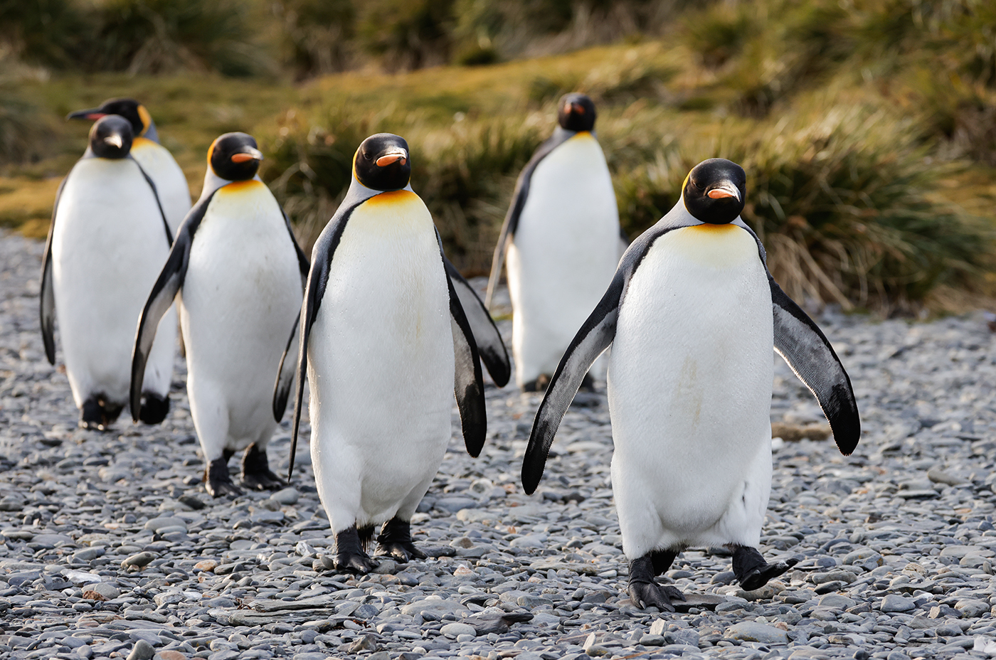 Zwischendurch liefen Gruppen von Königspinguinen. Aufgrund der Überfüllung kamen sie bis auf einen Meter an uns heran.
