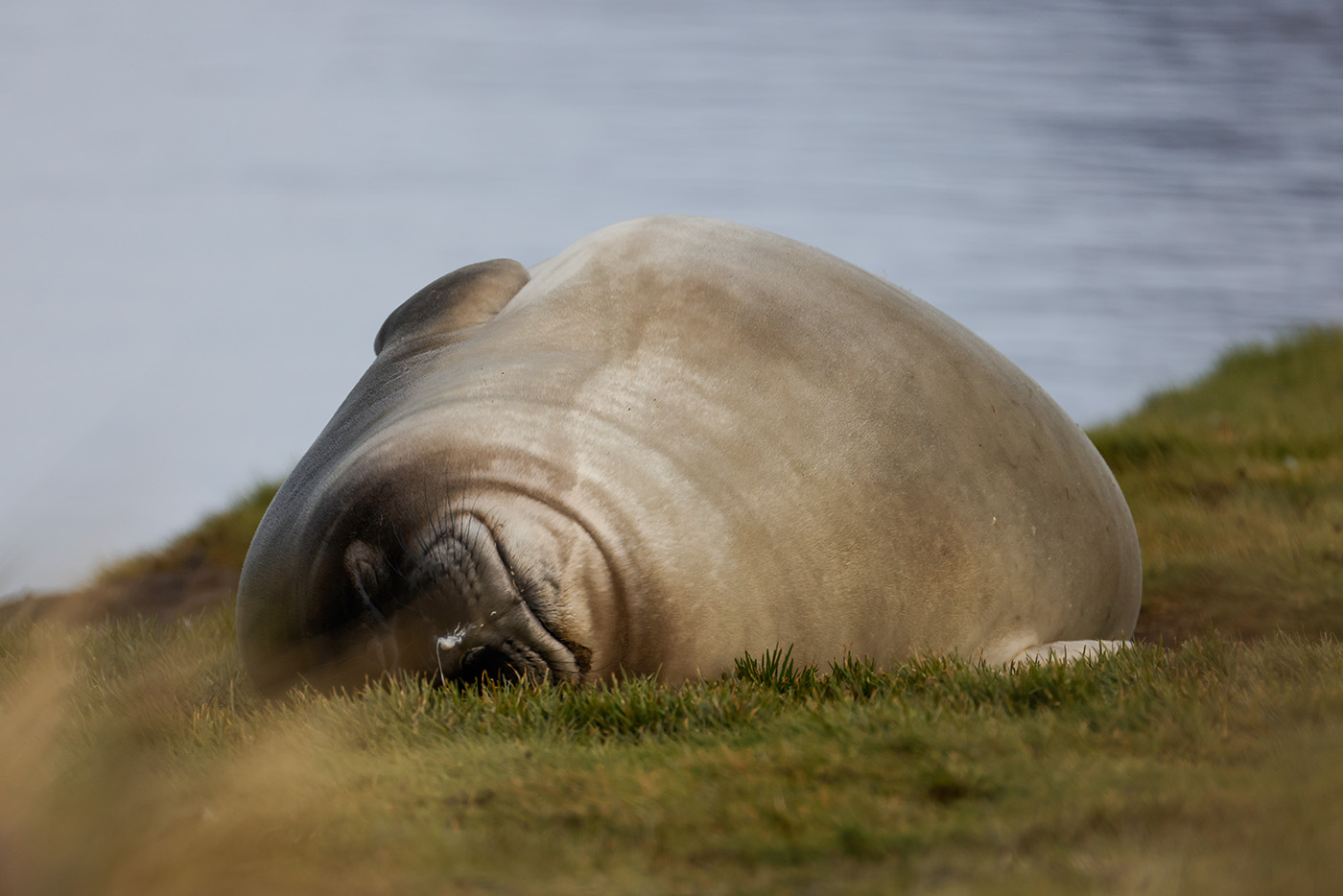 Wir beobachteten Riesensturmvögel, die alles anpickten, was sich nicht bewegte, auch schlafende See-Elefanten. Einige der Tiere hatten Wunden davongetragen. Offenbar unterscheiden die Vögel so, was Aas ist.