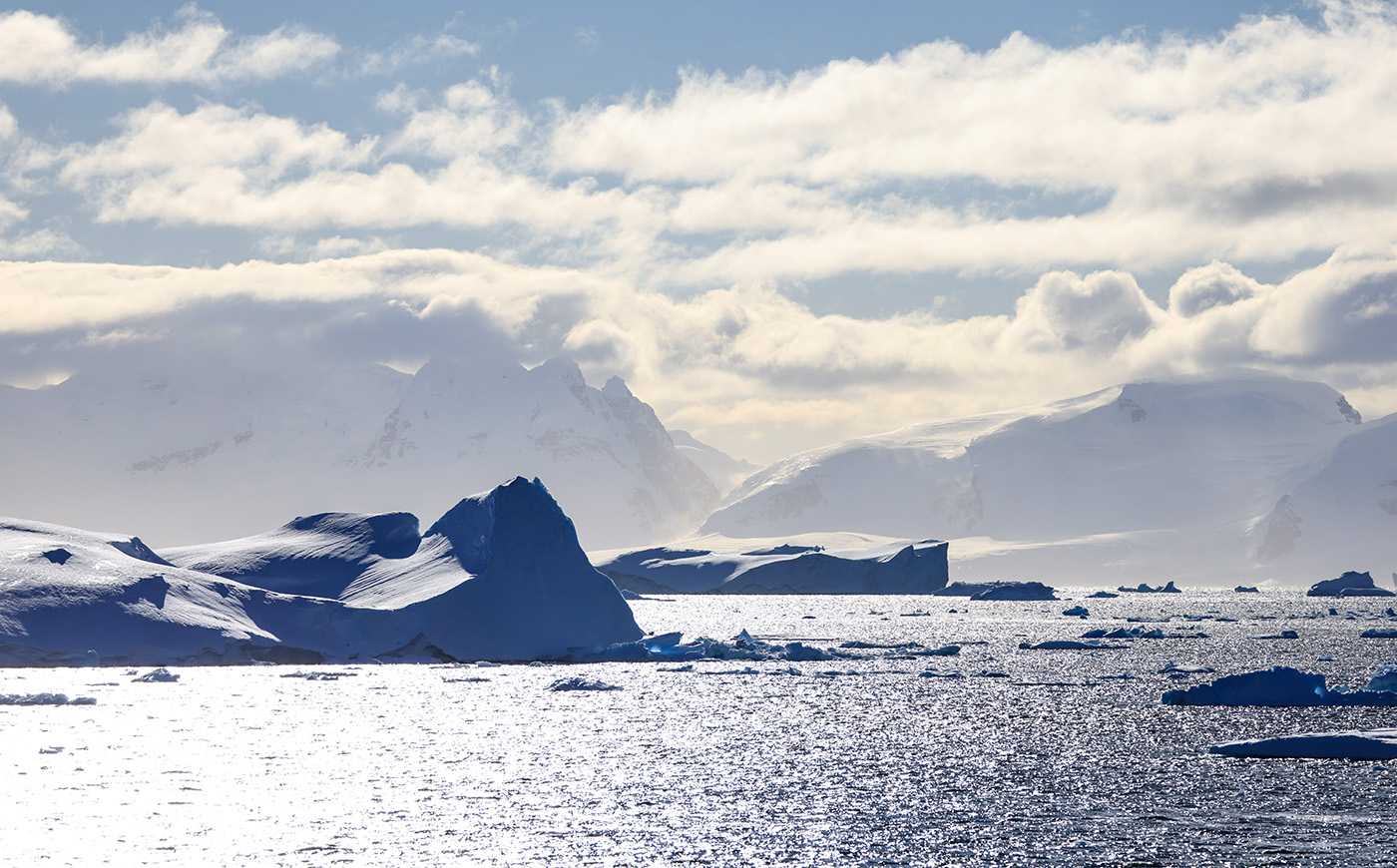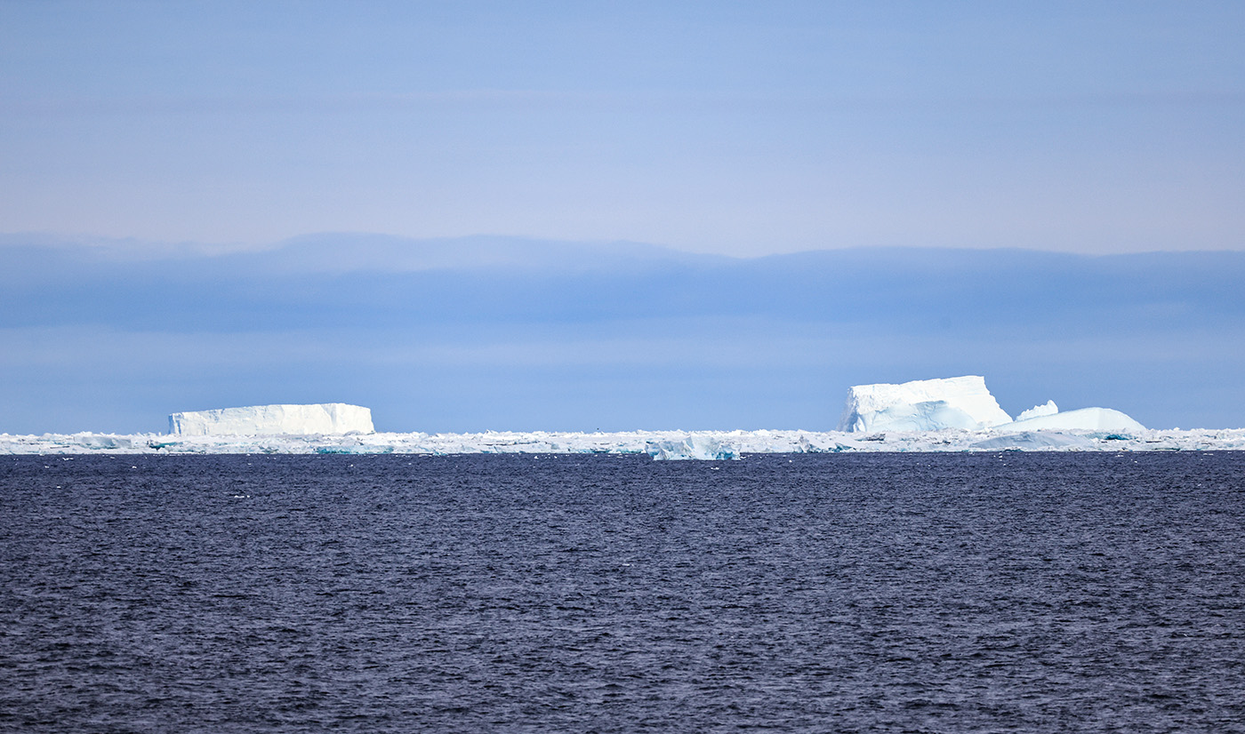 Heute am frühen Morgen kam das erste Schelfeis in Sicht – ein untrügliches Zeichen, dass wir der Antarktis näher kommen. Das Eisfeld mussten wir umfahren und nähern uns dann von Norden den South Shetland Inseln.