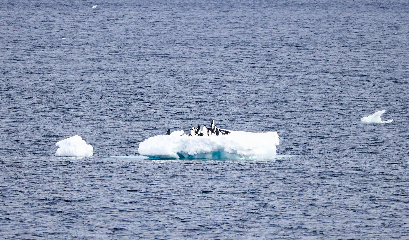 Adeliepinguine hatten einige der Schollen in Besitz genommen.