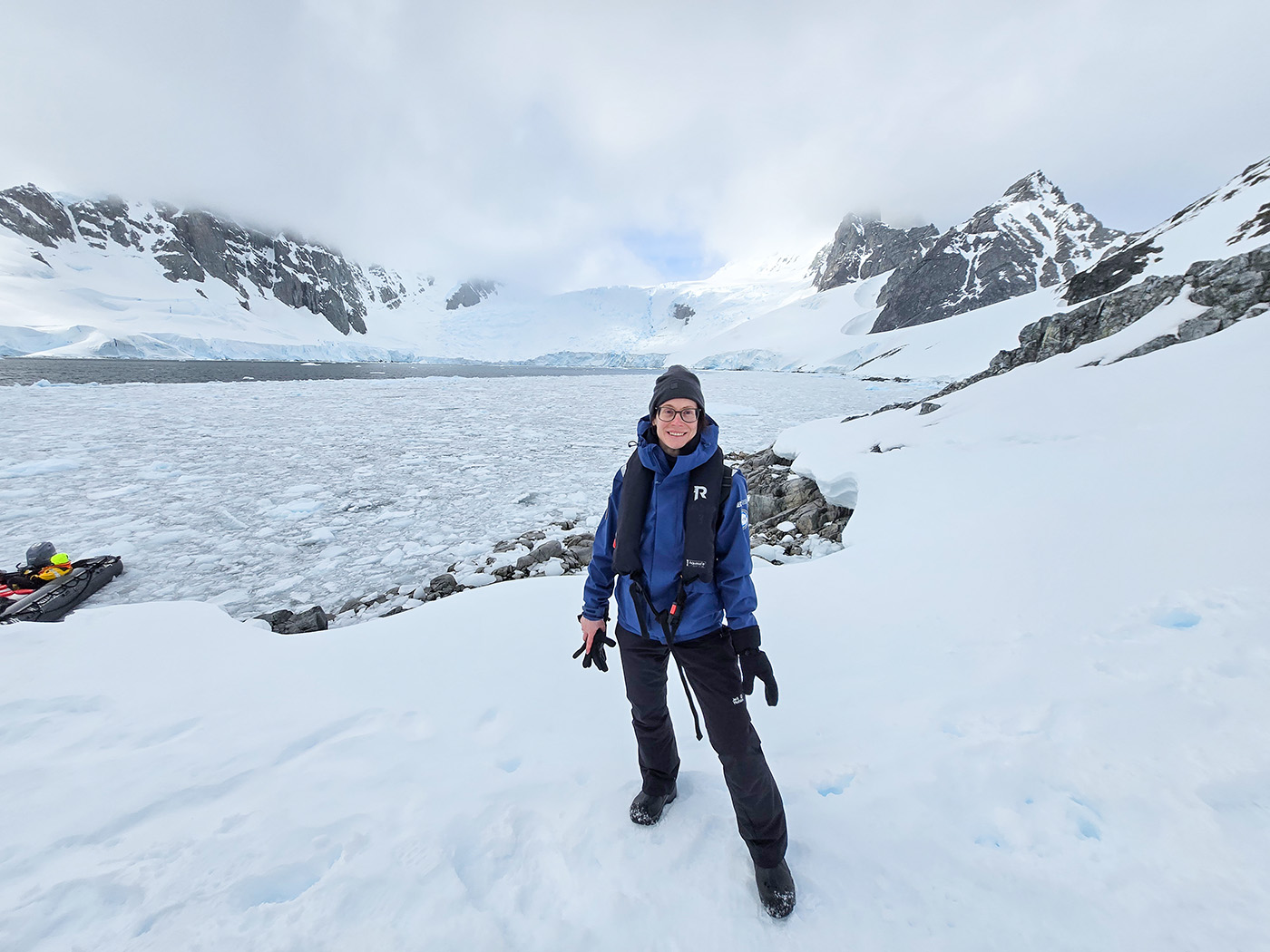 Heute sind wir endlich auf dem antarktischen Festland angekommen. Wie mussten früh raus, weil wir uns heute für das Science Boat eingetragen haben, d. h. wir fuhren mit einer Wissenschaftlerin in einem Schlauchboot in das Fjord vor Orne Harbour und nahmen dort Wasserproben. Ziel ist, zu erkunden, ob die hiesige Vermischung des Meerwassers mit dem Süßwasser aus dem angrenzenden Gletscher Auswirkungen auf das Phytoplankton hat. Die Wasserproben werden gefiltert und dann zur DNA-Bestimmung nach Argentinien gesendet. Zudem haben wir die Klarheit des Meerwassers mit einer Sichtprüfung gemessen (7,20 m) und mit einer Tauchsonde zusätzlich Salzgehalt, Temperatur und Verunreinigungen bestimmt.