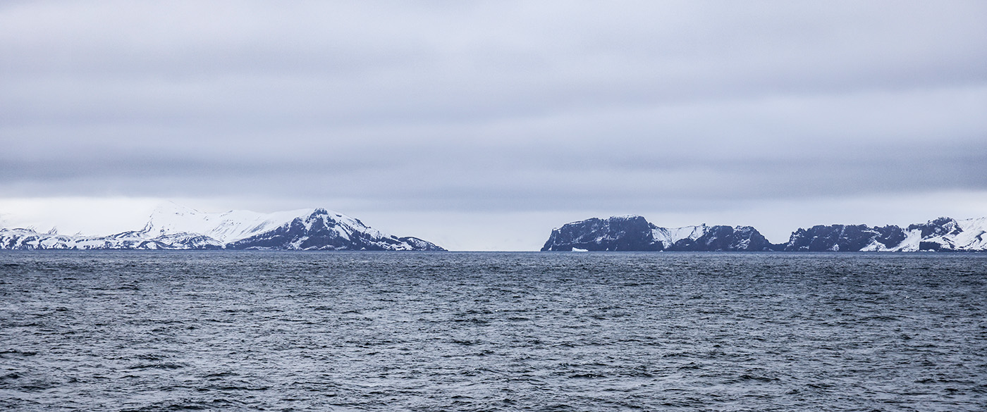 Kurz nach dem Aufwärmen und dem Dinner nahm die Fram Kurs auf das antarktische Festland und fuhr u. a. an Deception Island vorbei. Diese vulkanische Insel hätten wir gerne erkundet. Man kann mit dem Schiff in die offene Caldera hineinfahren und die am Innenufer befindlichen ehemaligen Walfangstationen besuchen. So haben wir aber zumindest aus der Ferne einen Eindruck gewonnen.
