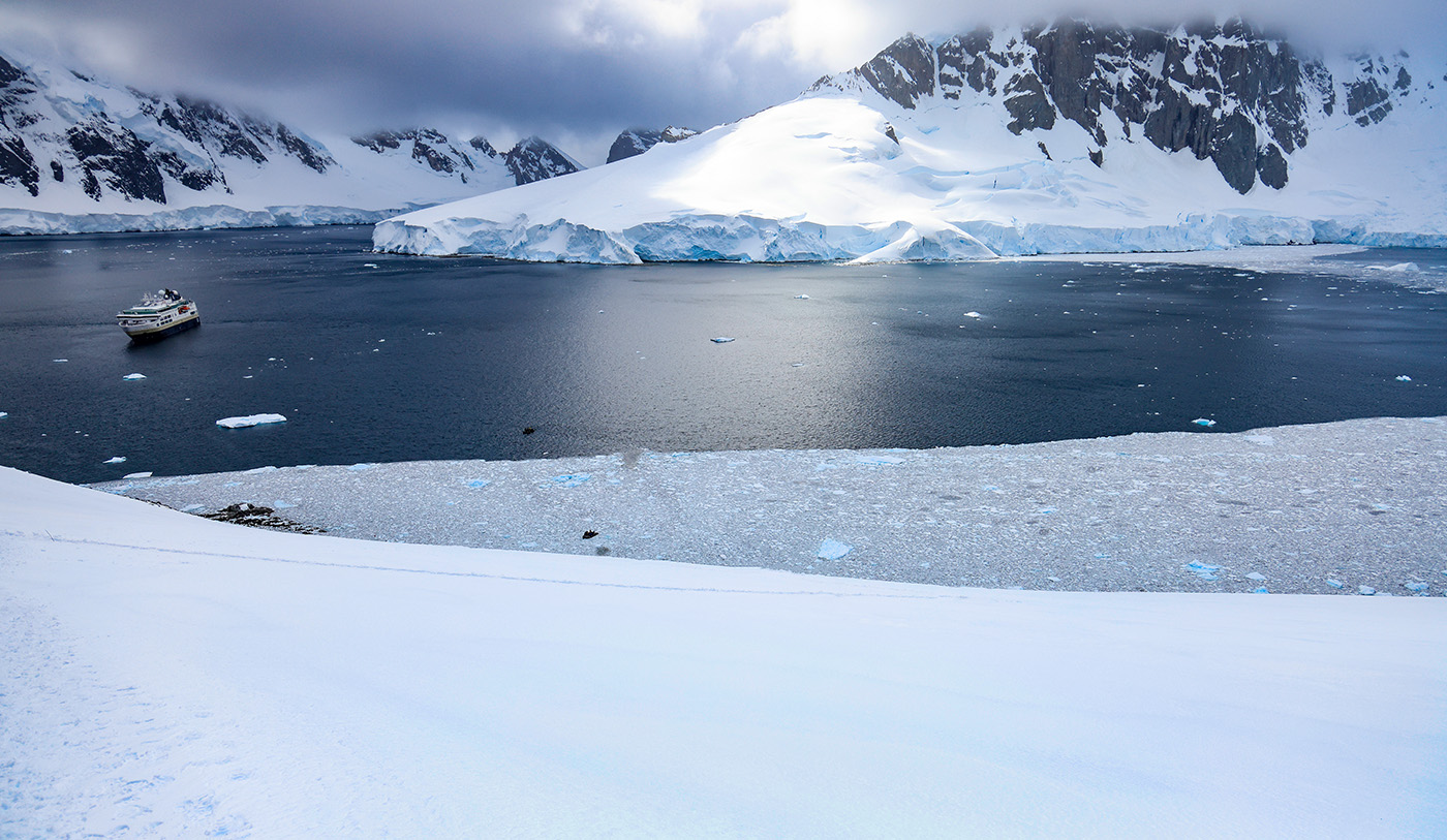 Während des Abendessens ging es dann weiter durch den Errera-Kanal in Richtung Paradise Harbour. Landschaften von unwirklicher Ästhetik zogen an uns vorbei. Die Kombination aus faszinierender Schöneit und offensichtlicher Lebensfeindlichkeit ist in dieser Form wohl einmalig. Ohne technische Hilfsmittel und passende Ausrüstung ist ein Überleben in dieser Umgebung nicht möglich.
