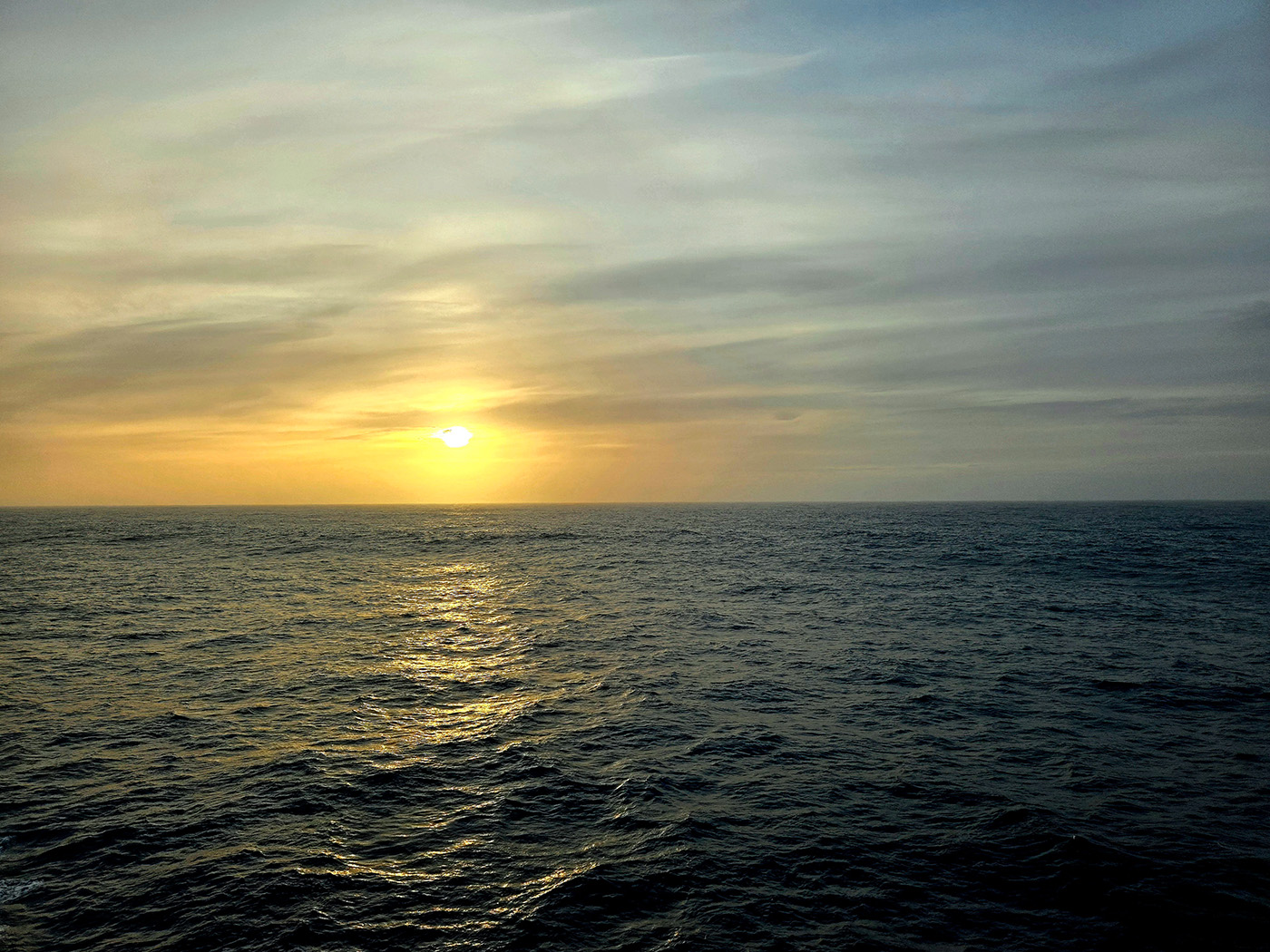 Gegen Abend beruhigte sich die See und wir hatten einen schönen Sonnenuntergang.